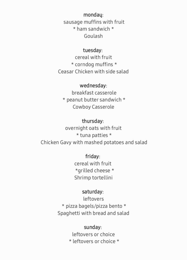 I’m going to do a regular menu this week since all last week was devoted to freezer fillers.